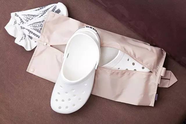 鞋袋是可以調節大小的,一般收納套裝里的鞋袋是按男款鞋子的大小設計的,裝女士鞋會略大,而這款鞋袋,只要按上欽紐就能縮小尺寸,裝男鞋或者女鞋,都能剛剛好。